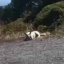 【泳ぐ】 イヌがこっちを向いて待っていた。私が枝を投げてる→犬は落ち葉にこうなります…